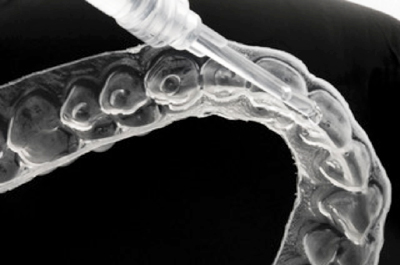 Imagem 13: Orientações ao paciente em relação a quantidade de gel usado no clareamento caseiro para cada dente.