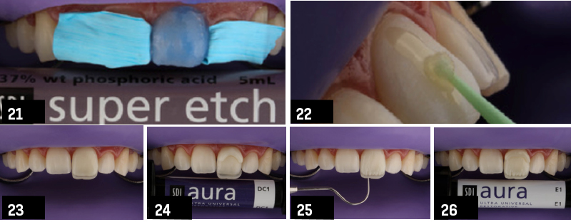 Imagem 26: Camada única de resina composta de esmalte AURA E1 (SDI) para finalizar.