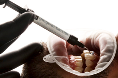 Imagem 06: Realização da proteção gengival com Gingival Barrier da SDI