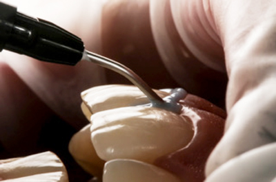 Imagem 22: Aplicação do stae (SDI) com micro points (SDI) sobre a face vestibular condicionada com ácido fosfórico 37%.