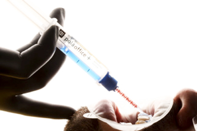 Imagem 08: Inserção do material clareador (Pola Office+ da SDI) sobre as faces vestibulares do dentes