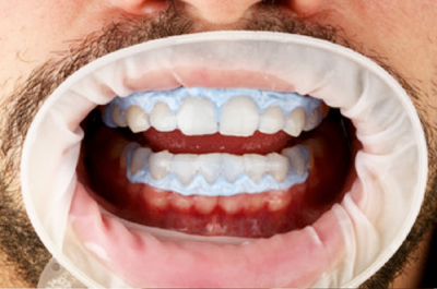 Imagem 09: Foto de ambas as arcadas com o gel clareador já inserido